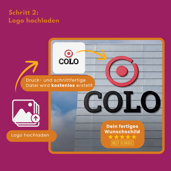 Sie laden es hoch, und ich fertige daraus ein konturgeschnittenes Firmenschild exakt nach Ihrer Markenidentität.