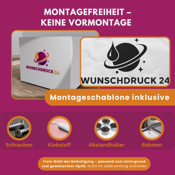 Eine Montageschablone wird automatisch mitgeliefert, sodass die Anbringung des Firmenschildes unkompliziert und präzise erfolgen kann.