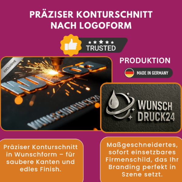Dein 3D-Firmenschild konturgeschnitten mit deinem Logo – sofort bestellen