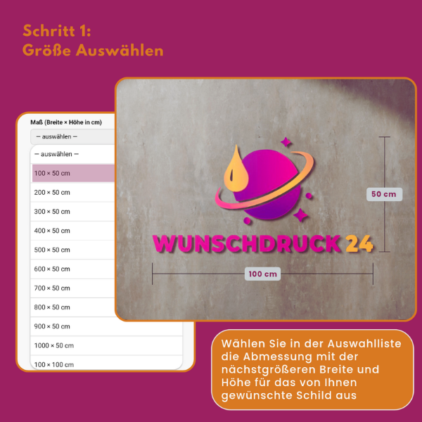 Einfach Wunschgröße auswähle und das Logo hochladen.